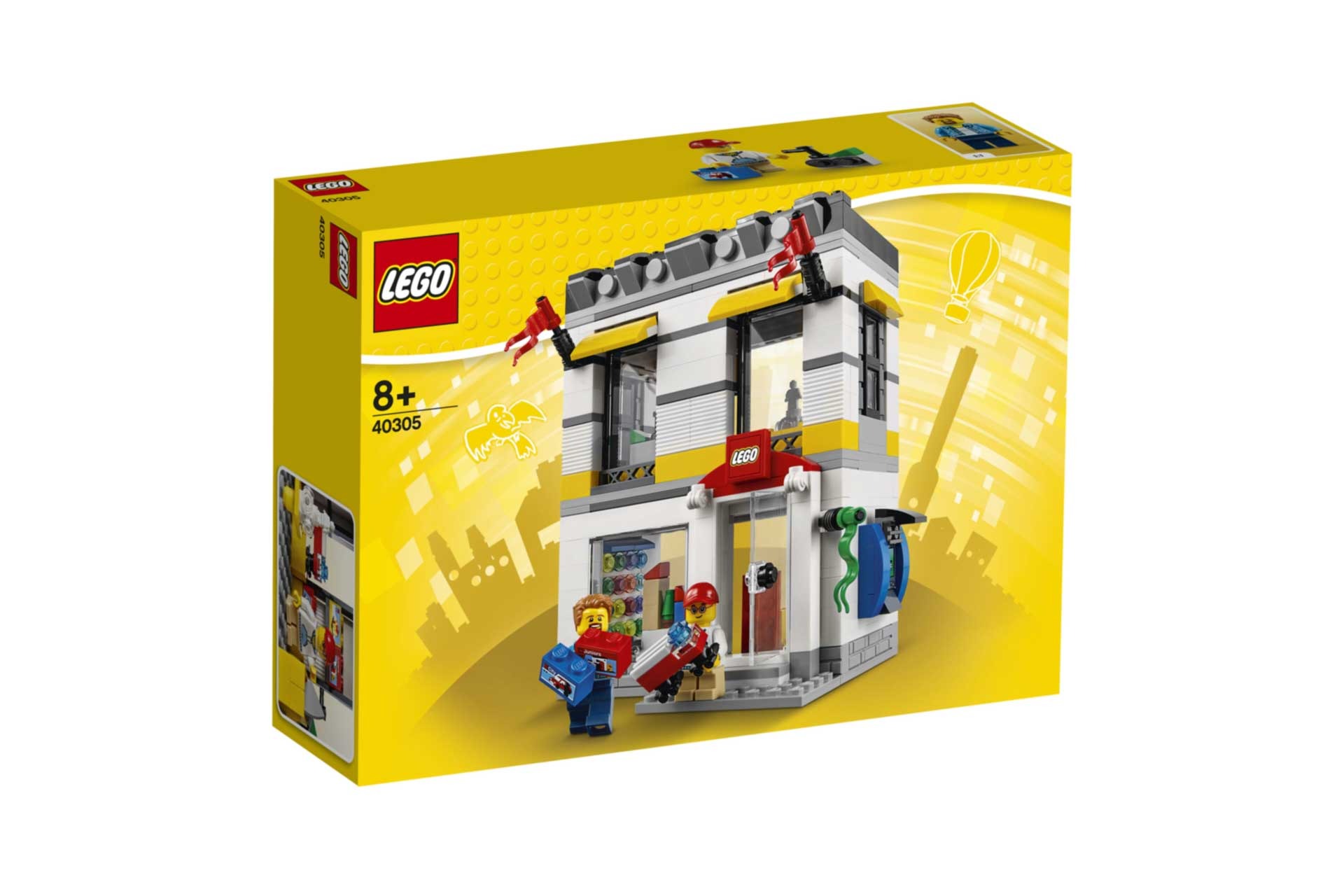 Bouw je eigen zaak met de geweldige (LEGO 40305) LEGO® Brand Store op microschaal. Deze winkel van 2 verdiepingen heeft een kleurige gevel met een doorzichtige deur die open kan, 3 ramen, 3 vlaggen en een LEGO uithangbord. Binnen vind je een ‘Kies & bouw’-muur, een ‘Bouw een minifiguur’-display, rekken gevuld met LEGO dozen en een toonbank met kassa. De set is inclusief 2 minifiguren en heeft modulaire bouwelementen die je van plaats kunt verwisselen om je eigen winkel te ontwerpen.