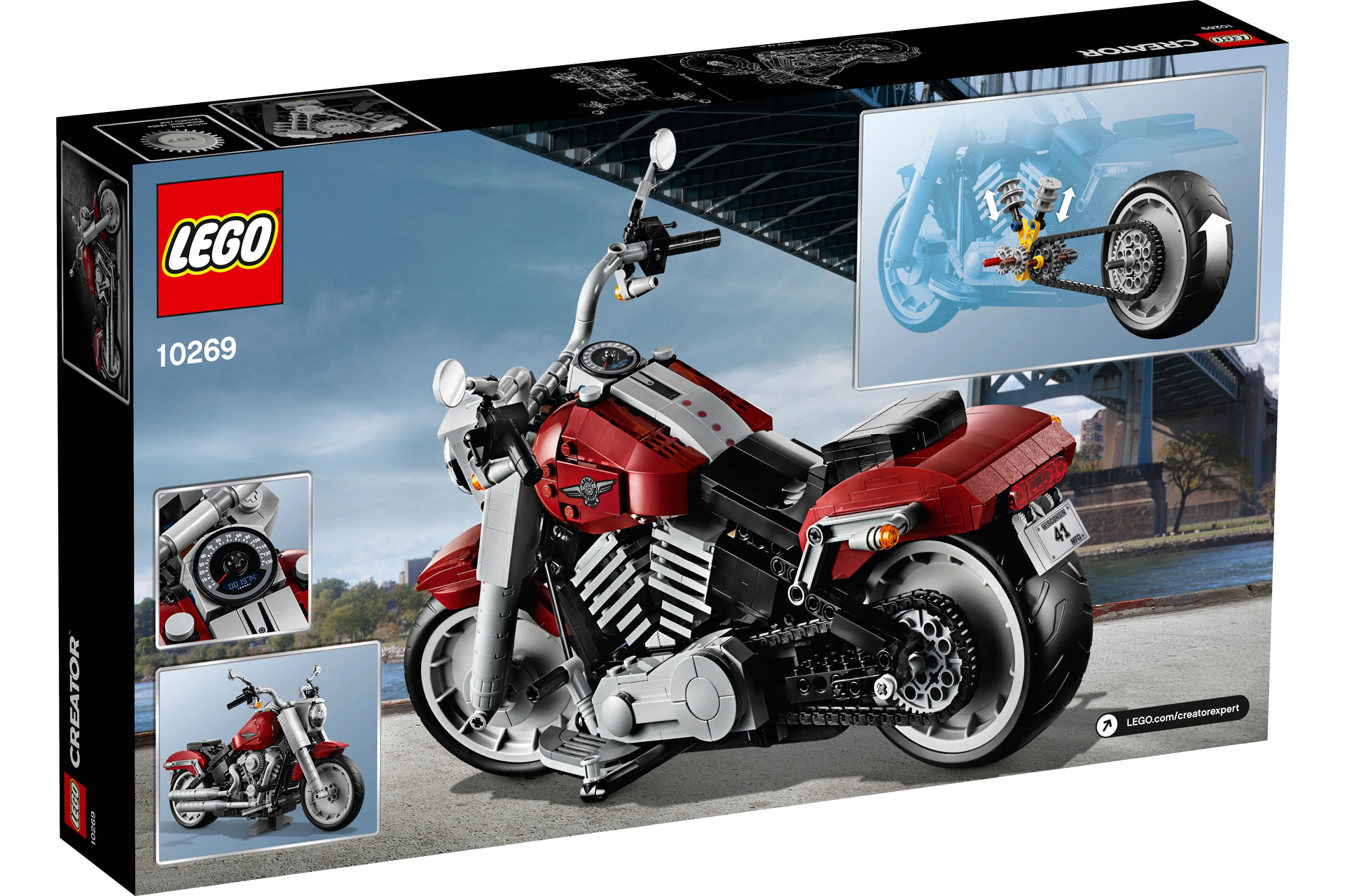 Ontdek de subtiele details van een onvergetelijk staaltje techniek met de LEGO® Creator Expert (LEGO 10269) Harley-Davidson® Fat Boy® motor. Deze zeer gedetailleerde LEGO motor is ontwikkeld in samenwerking met Harley-Davidson en geeft de magie van de echte machine nauwkeurig weer, van zijn Lakester-schijfwielen met vette banden tot zijn ’teardrop’-tank met logo-opdruk en ingebouwde snelheidsmeter. Daarnaast is het model uitgerust met een Milwaukee-Eight® motor met bewegende zuigers, een dubbele uitlaat, een stuur met handvatten, een beweegbaar schakelpedaal en beweegbare remhendels, een standaard en een stevige houder. Dit fantastische model, dat is afgewerkt in donkerrode en zwarte kleuren, vormt een geweldige blikvanger voor thuis of op kantoor. Deze geavanceerde LEGO set biedt een boeiend en plezierig bouwproces. (LEGO 10269)