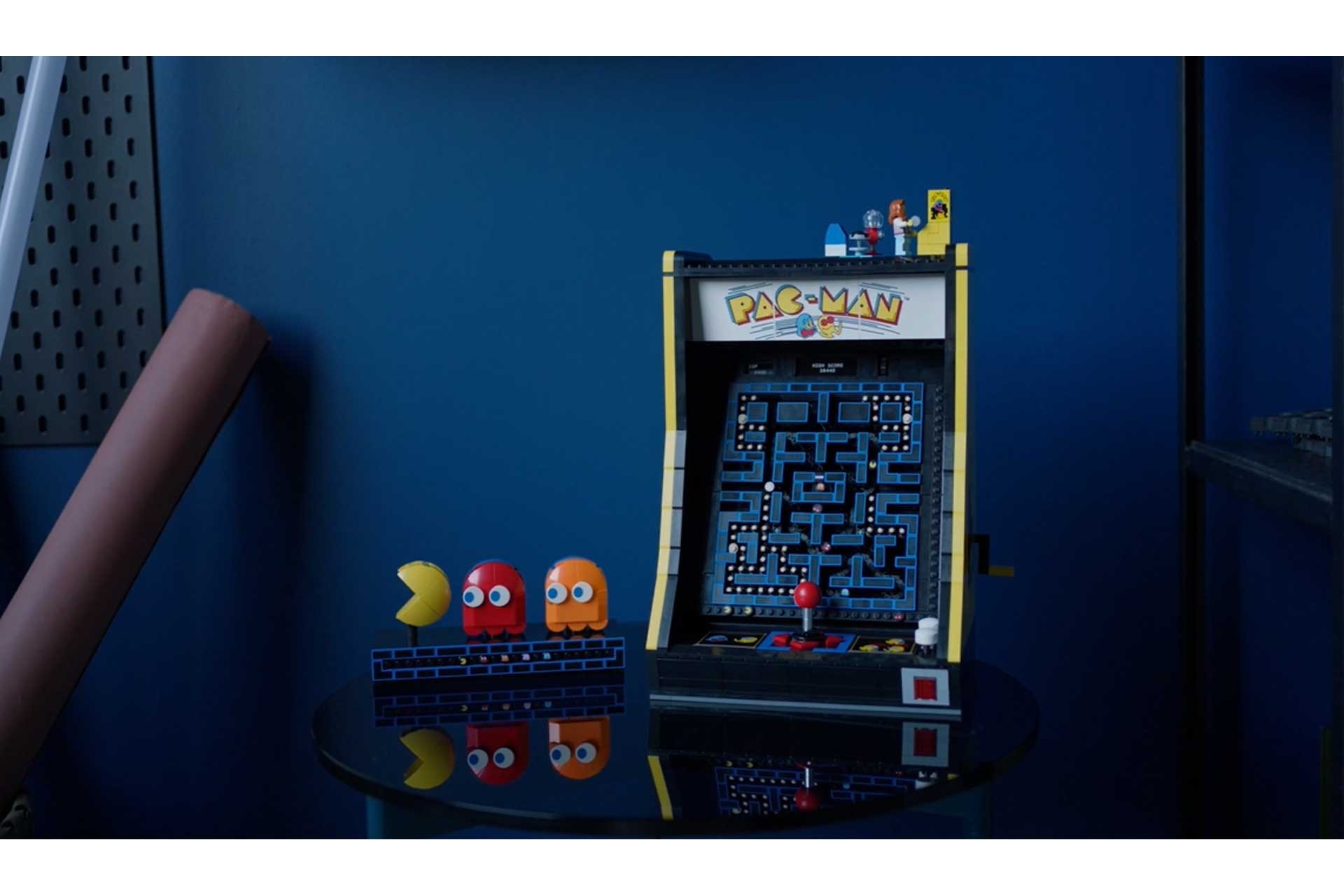 Deze LEGO replica (LEGO 10323) zit vol retrodesign en leuke functies, waaronder een joystick die in 4 richtingen kan worden bewogen en een verlichte muntgleuf. Draai aan de hendel om een mechanisch doolhof te activeren dat de klassieke achtervolging tussen je favoriete personages simuleert of open het achterpaneel om het mechanisme te bekijken. Er is zelfs een scène uit de jaren 80 die je kunt bouwen, compleet met een minifiguur van een gamer en een displaydoos met draaibare figuren van PAC-MAN, BLINKY en CLYDE.