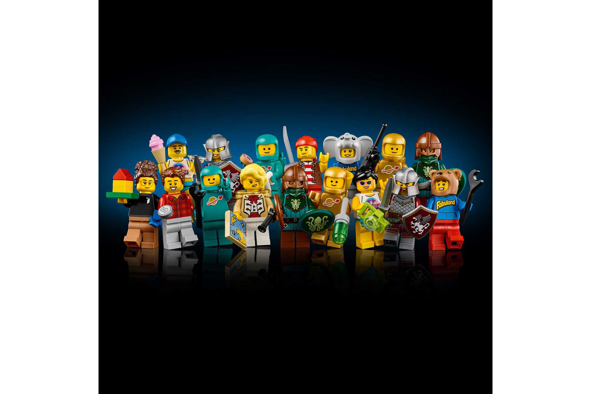 In elke capsule vind je elementen om een LEGO minifiguur te bouwen, waaronder 4 die zijn geselecteerd via een LEGO Ideas enquête onder fans. Er zijn minifiguren die verwijzen naar klassieke LEGO thema’s en subthema’s zoals Castle, Paradisa en Fabuland®, plus figuren van de fan die de set heeft bedacht, astronauten en meer.