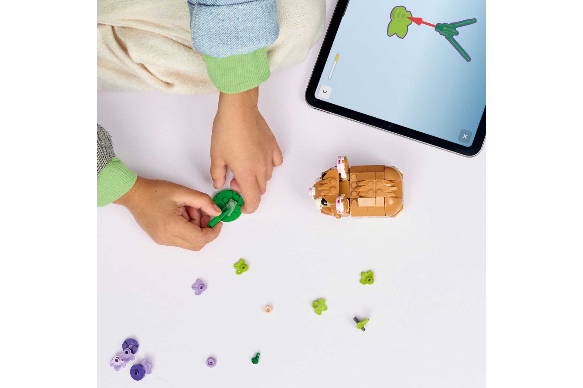 - EINDELOOS DOEN ALSOF – kinderen kunnen verhalen naspelen met 3 modellen van kleine dieren (de modellen kunnen niet tegelijkertijd worden gebouwd): een schattige hamster, een egel met een bloem of een arend met een vogelnest en een ei