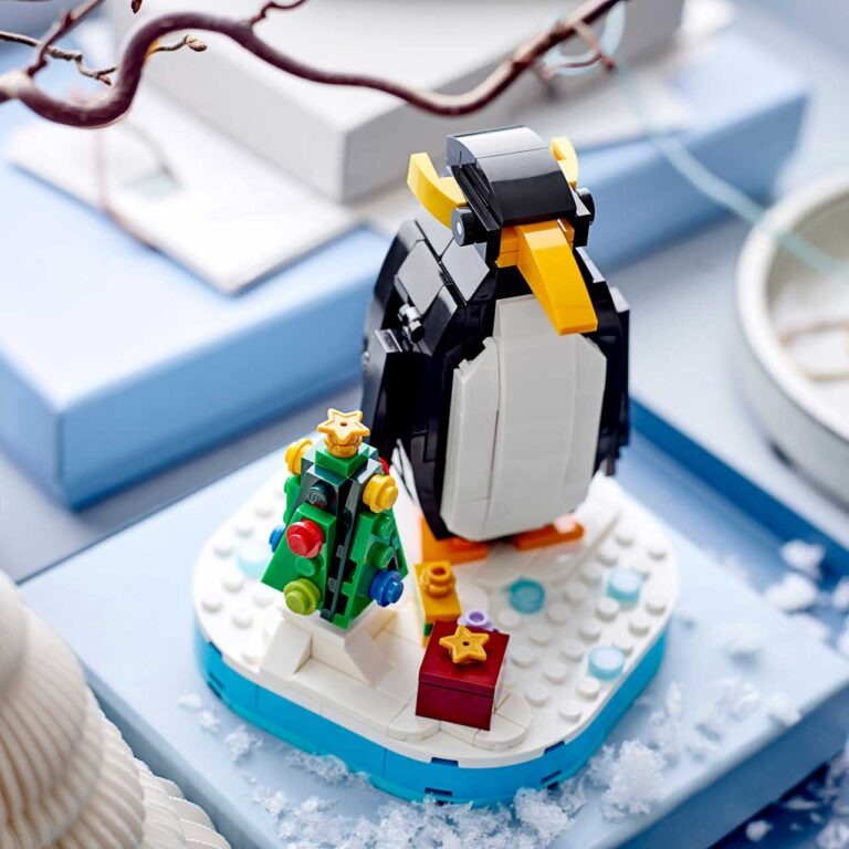 Geniet volop van de feestdagen met deze superschattige kerstpinguïn (LEGO 40498) om zelf te bouwen en ergens neer te zetten. De zeevogel kan ronddraaien en zijn vleugels bewegen. Hij staat op een platform naast een versierde kerstboom en 3 ingepakte cadeautjes.