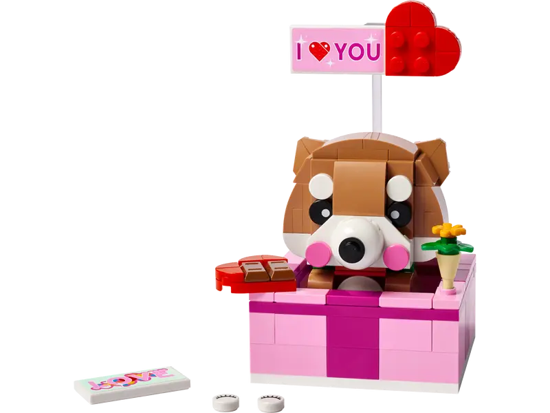 Met een valentijnscadeau laat je liefde zien, en met dit Liefdesdoosje (LEGO 40679) wordt Valentijnsdag nog leuker. Deze schattige set bevat een Shiba Inu hond, een hartvormig chocoladedoosje, een hartballon en bloemen en is ook geschikt voor andere speciale gelegenheden, zoals Moederdag, Vaderdag of verjaardagen. Inclusief verschillende ogen voor de hond en 2 verschillende stickerberichten. Zet de hond in de geschenkdoos voor een lieve display of haal hem eruit om er lekker mee te spelen.