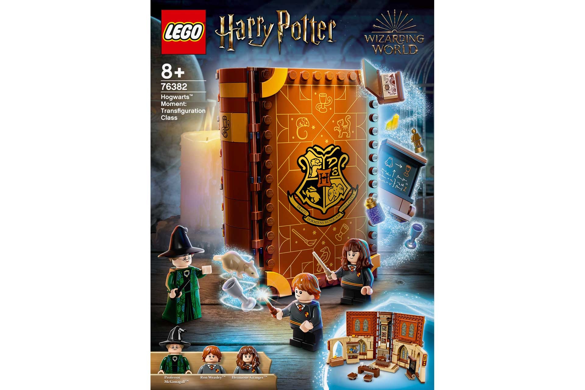 LEGO 76382 Harry Potter™ Zweinstein™ Moment: Transfiguratieles (LEGO 76382) is een speelset die zit verborgen in een speelboek van LEGO stenen. Kinderen slaan het boek open en kunnen gelijk een les volgen in het Transfiguratieklaslokaal van professor Anderling.