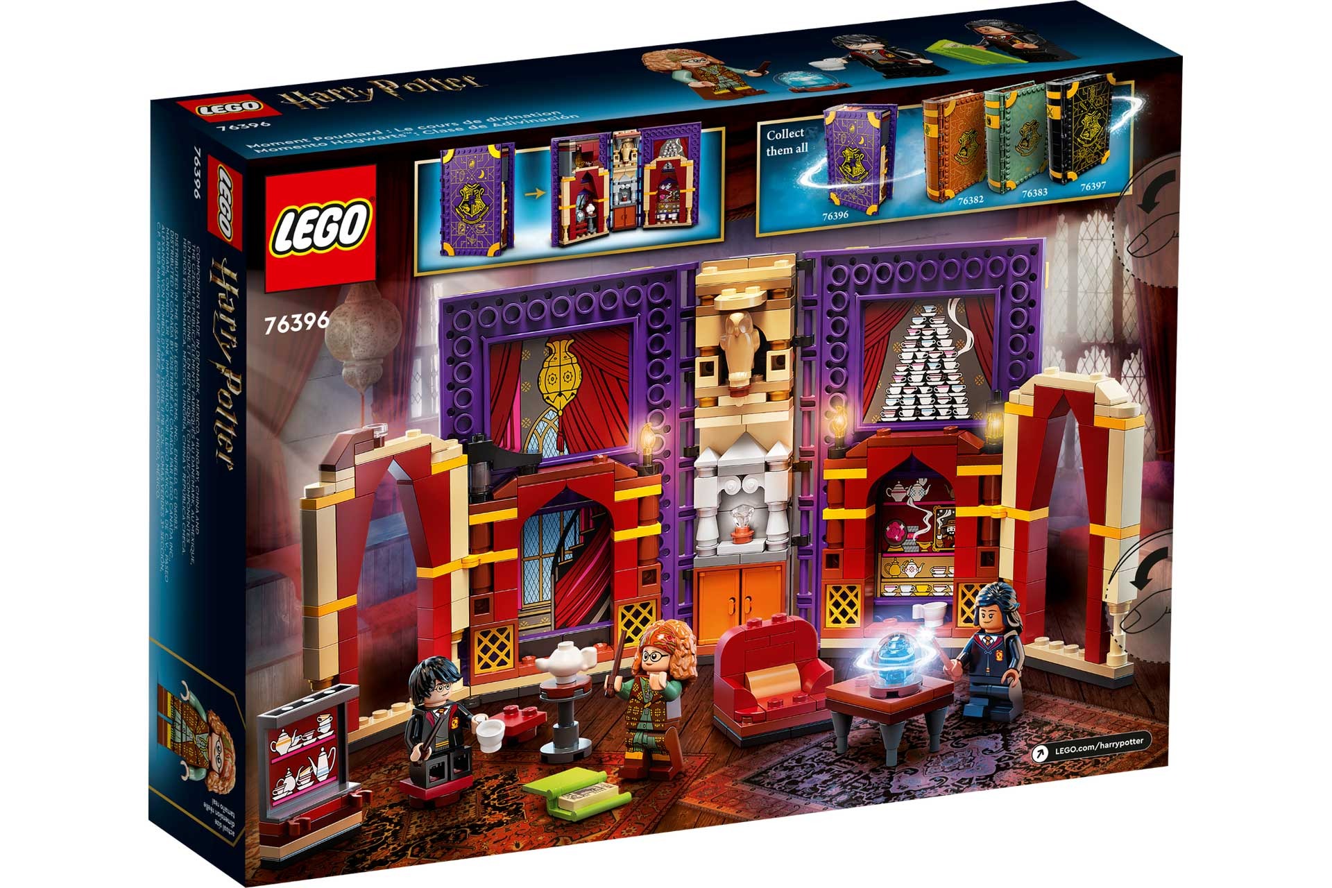 - Authentieke details – de set bevat minifiguren van Harry Potter™, Parvati Patil en professor Zwamdrift, plus coole accessoires, zoals een leunstoel, bureau, stoelen voor de leerlingen, een glazen bol, theekopjes en een opbergkast