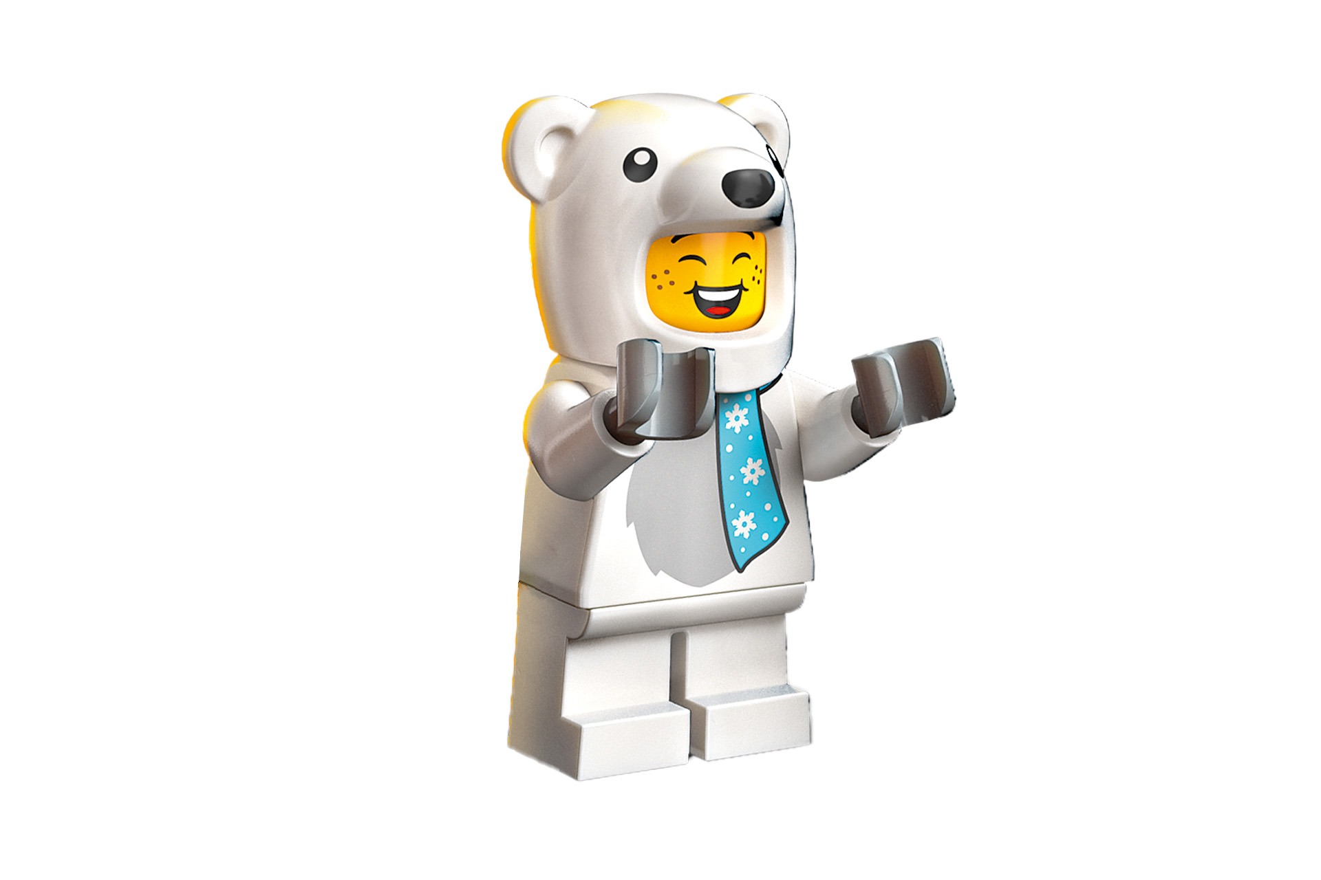 Het gaat hier om de minifiguren van de LEGO IJsbeer kostuum minifiguur met ijsje.